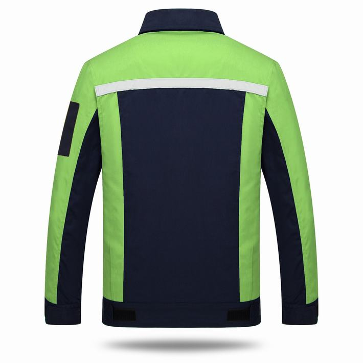淮南反光條工作服定做款式藏青色拼綠色工作服長袖套裝GZ-8016