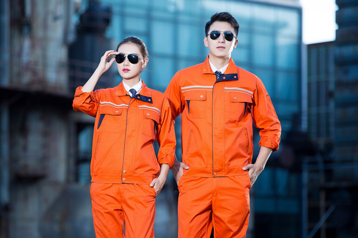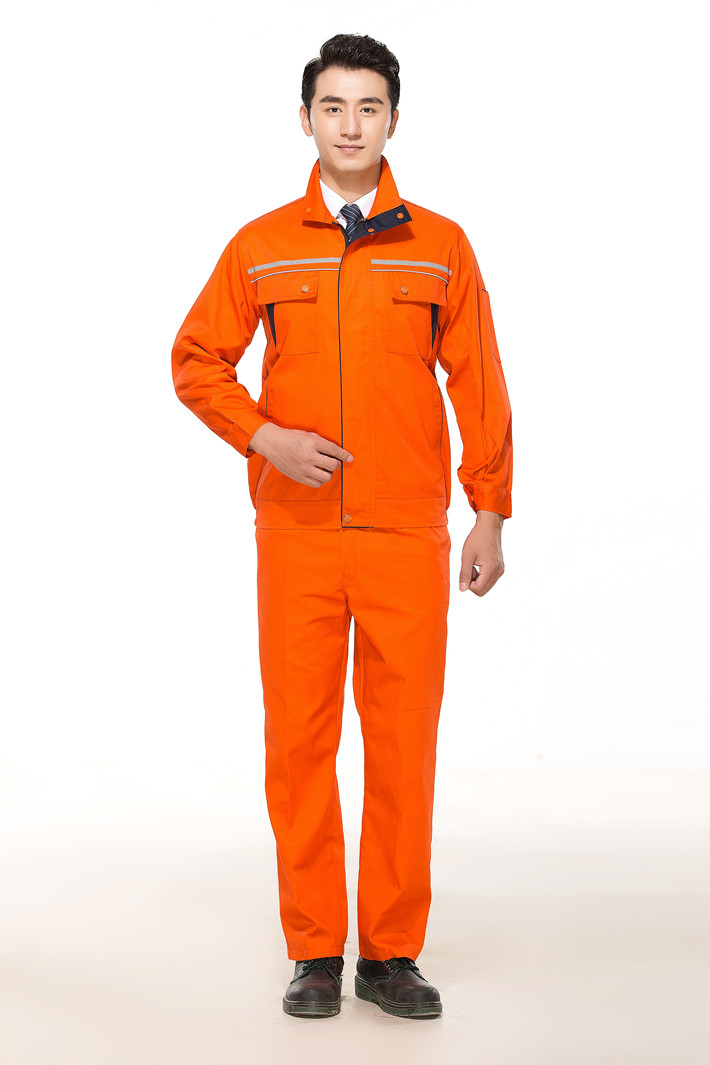 淮南工作服定做廠家定制煤礦機(jī)械工廠桔黃色立領(lǐng)拼色GZ-8024