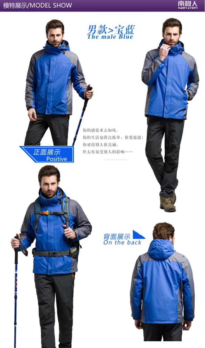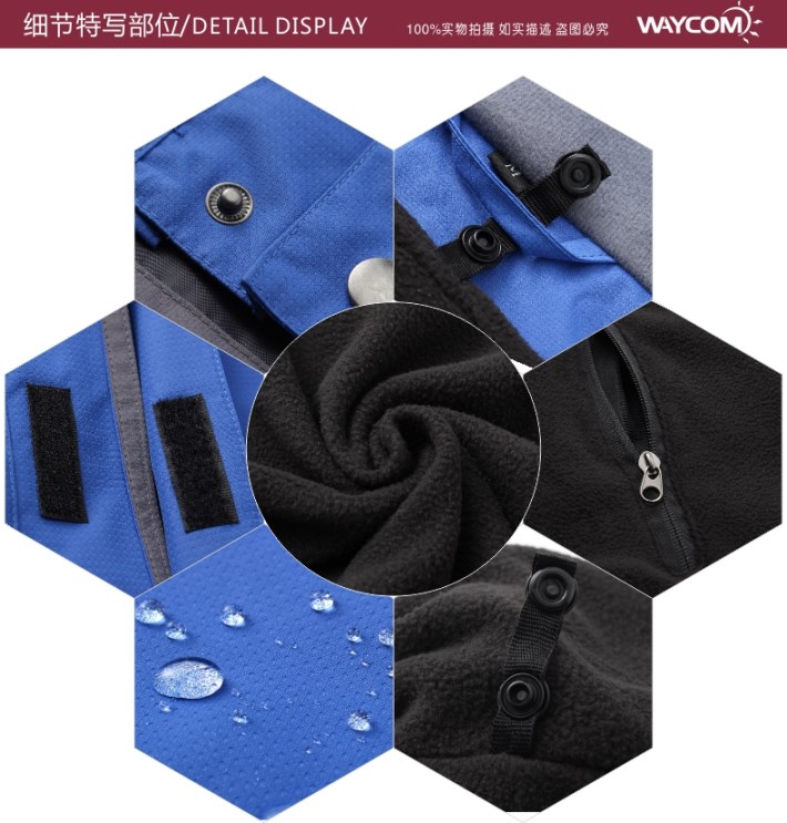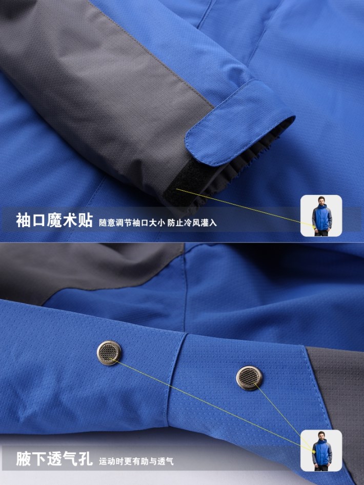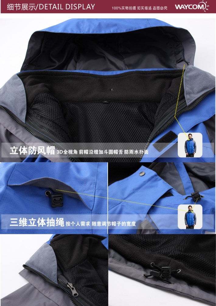 生產(chǎn)工藝:采用WEI-TEX防水透濕科技、三合一可拆卸內(nèi)膽、立體裁剪