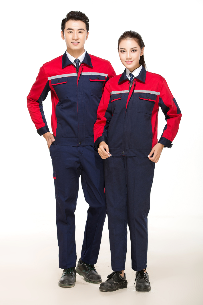 滌棉藏青色色拼紅色反光條工作服套裝FG-8002