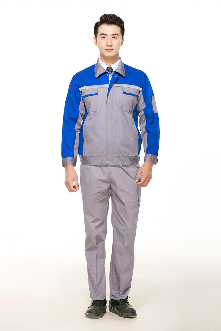 滌棉灰色拼藍(lán)色反光條工作服套裝GZ-8013