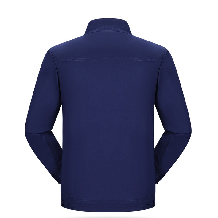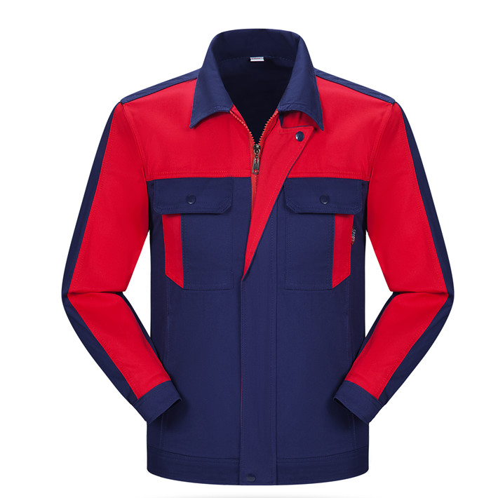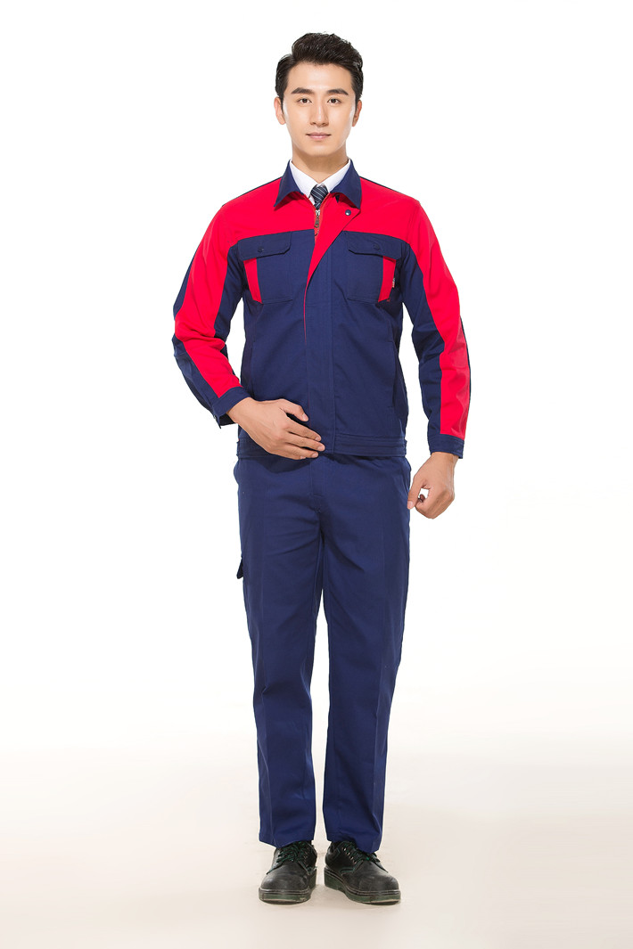 全棉紗卡藏青色拼紅色拉鏈?zhǔn)焦ぷ鞣L(zhǎng)袖套裝GZ-8019