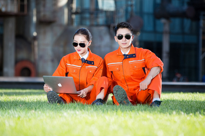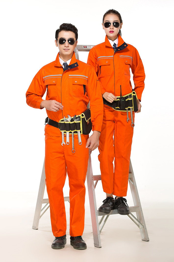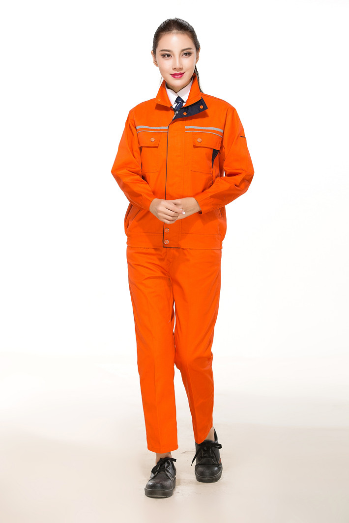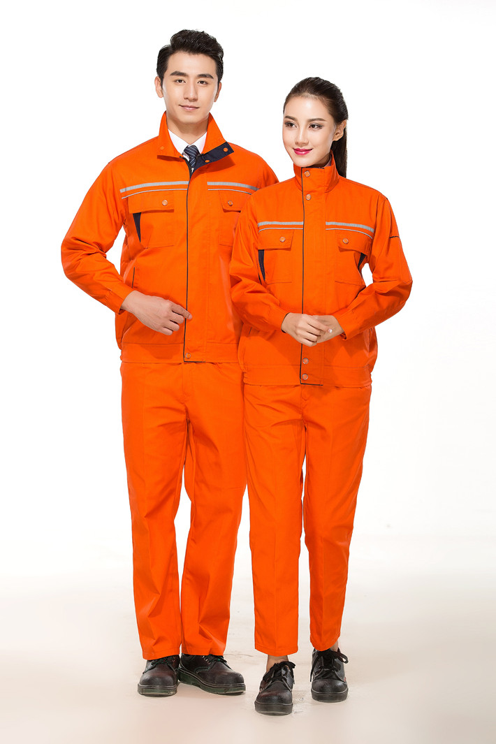滌棉桔黃色立領拼色拉鏈式反光條工作服長袖套裝GZ-8024