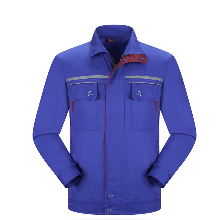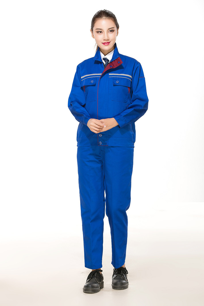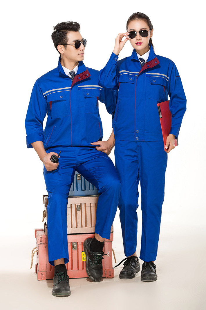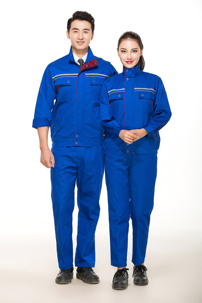 滌棉寶藍(lán)色立領(lǐng)拼色拉鏈?zhǔn)椒垂鈼l工作服長(zhǎng)袖套裝GZ-8025