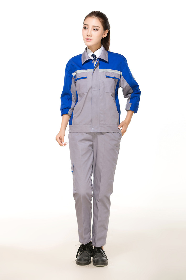 滌棉灰色拼藍(lán)色反光條工作服套裝GZ-FGT8013