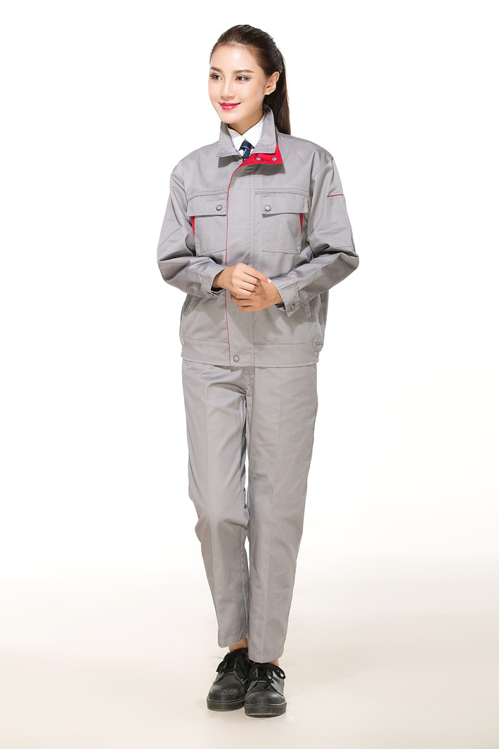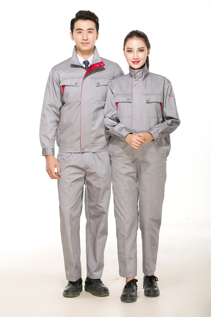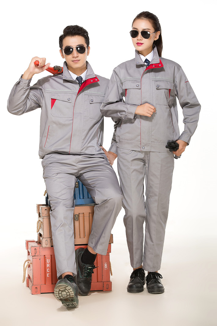 滌棉淺灰色立領(lǐng)拼色拉鏈?zhǔn)椒垂鈼l工作服長(zhǎng)袖套裝GZ-FGT8027