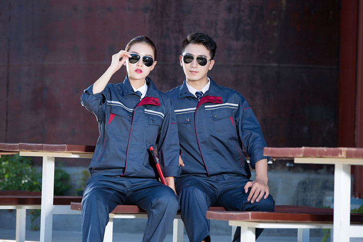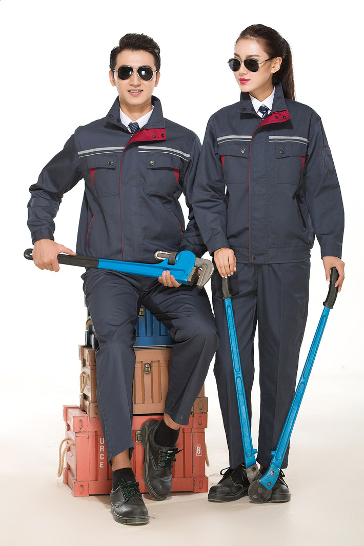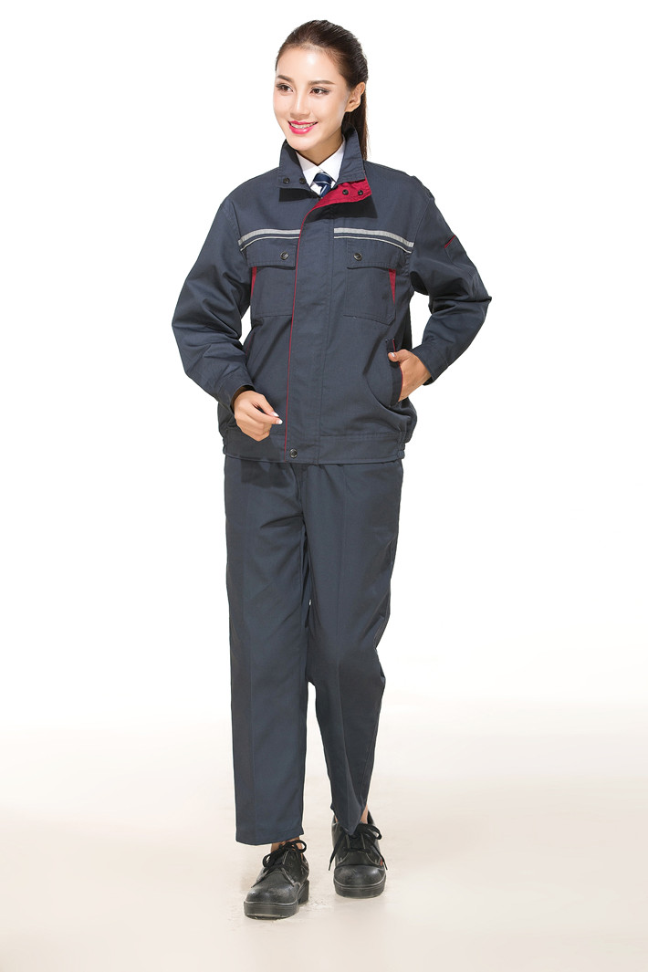 滌棉深灰色立領(lǐng)拼色拉鏈?zhǔn)椒垂鈼l工作服長袖套裝GZ-FGT8029