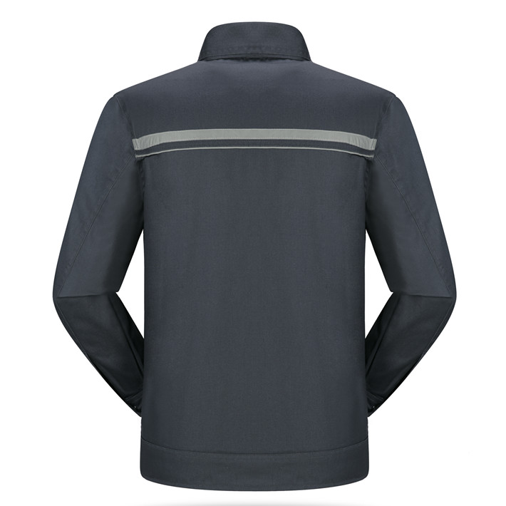 滌棉深灰色立領拼色拉鏈式反光條工作服長袖套裝GZ-FGT8029