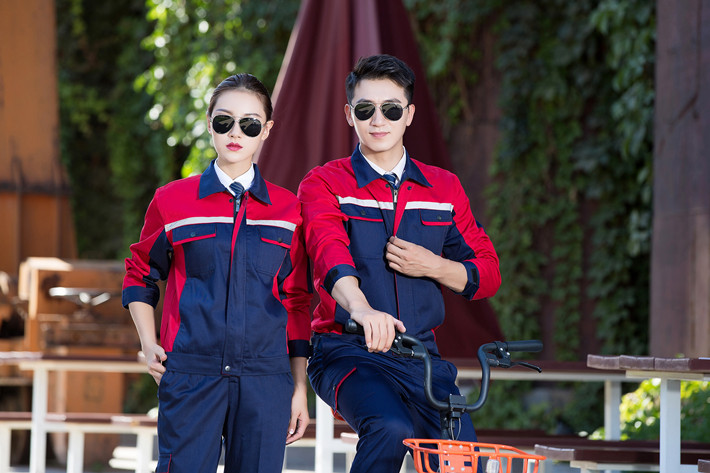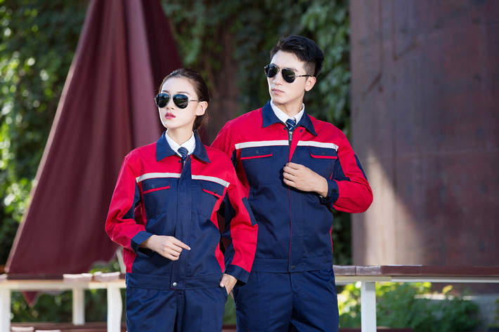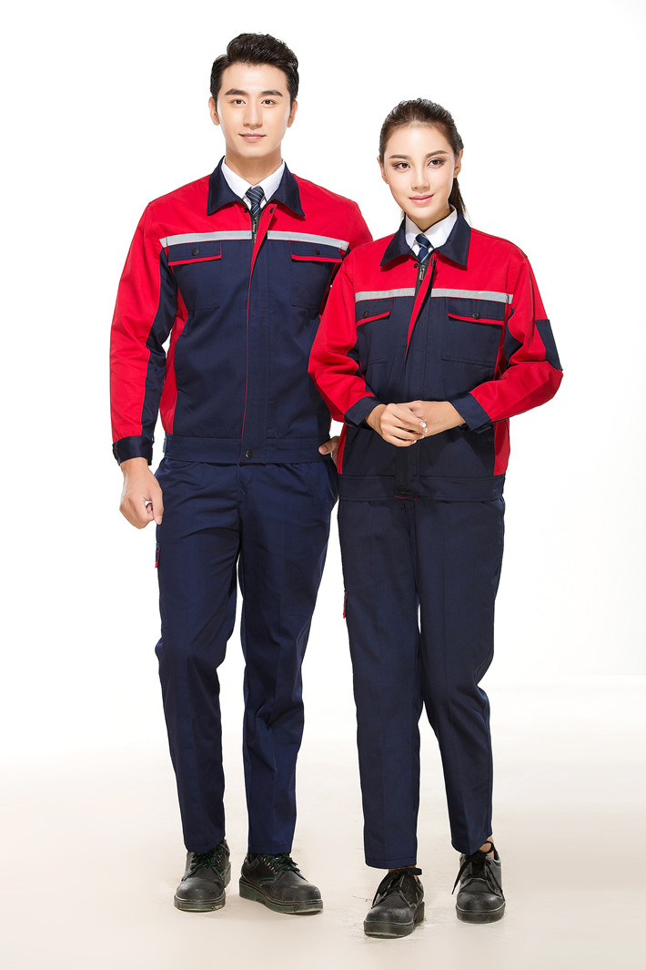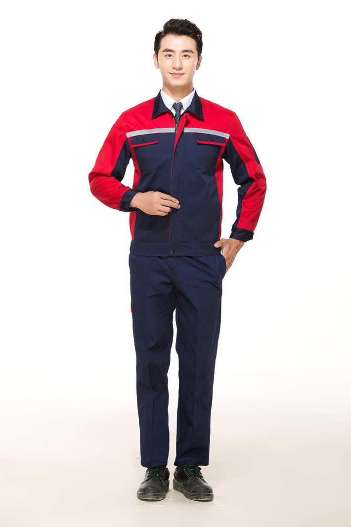 淮南工作服廠家,定做淮南工作服款式藏青色色拼紅色GZ-8012