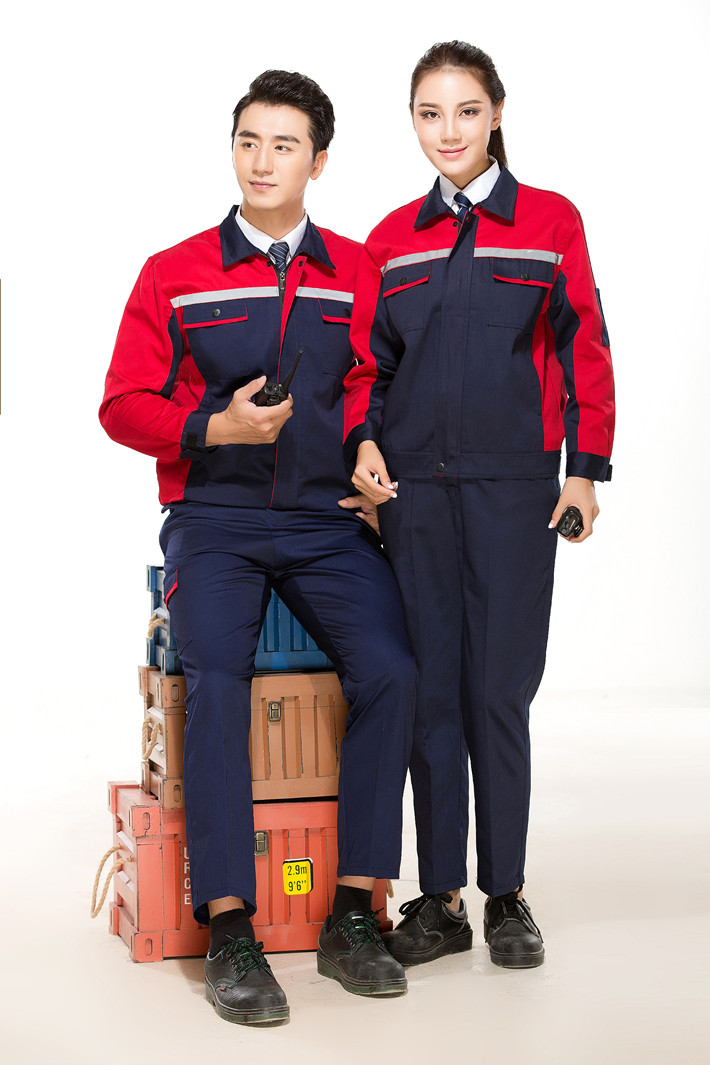 淮南工作服定制,定做淮南工作服款式灰色拼藍(lán)色套裝GZ-8013